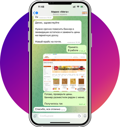 Если нужно срочно поменять цены или запустить акцию, отзовемся в любое время
